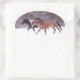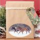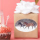 This rustic country western image features a bay stallion standing outside of a stable stall next to a black and white paint pinto mare. A perfect equestrian themed holiday image for the Christmas and New year's seasons.