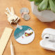 A snowy scene featuring a cosy-looking home with a snowman sitting outside. This design is perfect for Christmas cards, ornaments, and other holiday decorations! It can be customised or personalised by adding your own text or images.