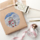Is this not the cutest and cuddliest winter snow penguin that you have ever seen? He has come out of his igloo at the North Pole to greet you. The little penguin is painted in soft pastel gray and white, with a vibrant orange nose and feet. He wears a red woolly scarf and has a red heart on his tummy. The frosty night sky is full of orange and yellow stars and a crescent moon hangs low.