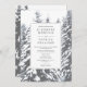 Winter snow pine trees forest photo chic wedding with black and white snowy pine trees showing a wonderland of wood land with elegant and modern typography.