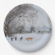 This lovely plate is decorated with a snow landscape picture, the two dogs in the foreground  are having a good sniff around and enjoying the snowy landscape. The original scenic image is a watercolour painting of a place in London called Pole hill, it always looks really festive when covered in a blanket of snow.  The dogs names are Tod (the tan German shepherd mixed breed) and Eddie (the black and tan terrier/collie mixed breed, both sadly no longer with us. I think this festive snow scene makes a very nice place mat and will make any Christmas dinner table look very special. I didn’t put a  Christmas message on the plate because the image will also look great throughout the year.
