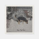 This original snow scene image on these cute dog christmas napkins is from a painting of a little black and tan mixed breed dog, he’s sniffing and scratching at the thick layer of freshly fallen snow that he’s just discovered for the first time in the garden. This little dog is named Eddie, he’s a german shepherd cross breed dog and he’s enjoy the cold weather in his winter garden. In the background of this scenic snow picture you can see a little grey garden gnome quietly sitting and reading his book at the side of the small snow covered frozen pond. There’s also lots of snow covered garden shrubs and an old wooden shed in Eddie’s garden, all these bits and bobs add interest to this lovely little winter snow scene on this quality art poster. These quality christmas paper napkins can be personalised with your own choice of text. The original painting of Eddie in the snow is tilted "First Snow" and is an acrylic painting. The original painting of Eddie has been digitally enhanced to give an engraved effect.