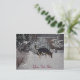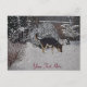 Winter snow scene with cute black and tan dog postcard