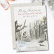 Merry Christmas from our New Home 2-in-1 holiday card and moving announcement with fully editable wording. The design features a mid winter woodland nature scene with the warm glow of a street lamp, a duck on the lake, an owl on the swing and a robin in the tree.