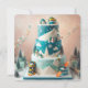 COOL WINTER SNOWBOARDING THEMED BIRTHDAY LAYER CAKE ON THE FRONT OF THE CARD. COMPLETELY EDITABLE COPY ON THE BACK.