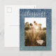 Modern winter snowfall blue Christmas photo card with the text blessings in cream elegant script on a chic dark blue watercolor background. Simply add your name and favourite family photo to this beautifully customised Christmas poscard. Add a handwritten personal message to the back and send it to your family and friends! Exclusively designed for you by Happy Dolphin Studio.