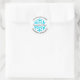 A custom round return address sticker embellished with a blue snowflake surrounding your name(s). Insert your names and address in place of the sample text shown in the design template.