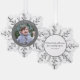 Send your message of holiday cheer with the pretty Winter Snowflake Happy Holiday Dated Ornament Card. Personalise it with a photograph, current year and family name. Feel free to change the message on the backside to suit your needs. This elegant wintery Christmas card features an intricate grey tone snowflake design with a white background.