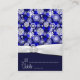 Winter Snowflake Wedding Reception Place Cards - feature a snowflake print with an elegant printed white ribbon with a diamond round buckle embellishment. Use a coloured gel or paint pen (found in department stores across the globe) to write each guest's name and table number on the cards. The back is shaded in navy blue. The card stock is set to basic satin finish; you can click on the orange customise button above to change the stock to linen, platinum, pearl and a variety of other choices if you prefer. You can also change the text, font colouring, sizing and more by clicking the orange customise button. These snowflake winter wedding reception placement cards match the suite found below.