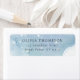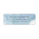 Winter themed return address label with a stunning abstract dusty blue watercolor design, adorned with tiny snowflakes.