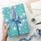 Wrapping paper featuring a winter snowflake pattern on a blue background. Perfect for Christmas / Holiday celebrations.