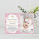 Winter Snowflakes Light Pink Gold Baptism Photo Invitation