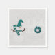 Winter Snowman and House Wreath in Teal Holiday Napkin