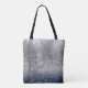 A wintery snowy scene in a forest of trees with a blue ombre filter. Haunting snow winter scene