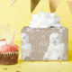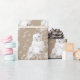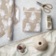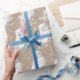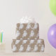 White winter snowy owl surrounded by snow on Kraft paper gift wrap.