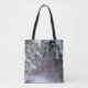 Winter snowy pine bough frozen bubble Tote Bag - Gorgeous photographs on each side of this rugged bag. One side features a snowy pine bough covering 3 sides of the bag with a space for a name, or delete it altogether. The back side of the grocery tote bag, or purse, is a frozen bubble with frost etched into the clear ice. It's a beautiful bag and is rugged for every day use or to use as a gift bag for someone special. Photographs by Aaron Burden on Unsplash.