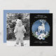 Winter Solstice Photo Card with black background. Happy Solstice! Celebrate the longest night of the year with this beautiful Christmas Holiday Winter Solstice design. This watercolor design features a full moon with a dark blue crescent moon, gold stars, a blue and white winter floral bouquet, white buck deer and metaphysical esoteric blue and purple crystal cluster points.