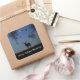 A beautiful winter solstice blessings sticker of an elk and ravens on a starry with crescent moon. A beautiful Solstice holiday label.