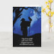 Winter solstice card with a wizard and owl in the night. Framed by an oak tree, with a magnificent night sky. A mystical magical yule card.