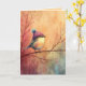 Set against a glowing sunset-inspired background, this songbird wears a soft pink knit hat while perched delicately on winter branches. Warm peach, coral, and golden tones give this artwork a gentle, uplifting feel. Perfect for heartfelt winter greetings, encouragement, or thoughtful everyday notes.
