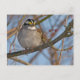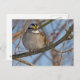 Postcard featuring a bright White-throated Sparrow puffed-up to stay warm on a Winter morning.