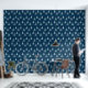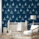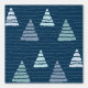 Serene and minimalist pattern featuring a spruce tree forest under snow with subtle dotted lines on a dark blue background. A repeating motif of snowy pine trees creates a tranquil forest scene across the surface. The simplicity of the tree silhouettes contributes to the overall calming aesthetic. Delicate dotted lines interspersed among the trees. The colour palette is kept muted, emphasizing natural tones. This simple yet elegant pattern brings a sense of calm and nature-inspired beauty to any setting.