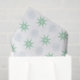 Winter pattern with pastel green stars and light blue snowflake pattern on Christmas tissue paper.