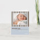 "Winter Stripes" blue/brown photo birth announcement. Personalise this modern and stylish photo card template with your baby boy's photo and details for a one-of-a-kind birth announcement.