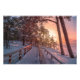 Winter sunset in pine forest near sea photo print