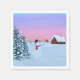 Acrylic painting of a cute snowman admiring a cardinal at sunset on Christmas eve