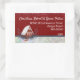 Winter theme snowy house on red custom rectangular sticker