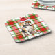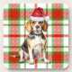 Winter Themed Beagle Red Green Plaid Holiday Coaster