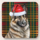 Fun coaster set for the person who loves their Belgian Tervuren. This one wears a Santa hat for a stylish approach to the holiday season, and sits cutely against a festive red, gold and green plaid background to decorate your home or office with seasonal pet lover joy.