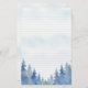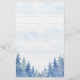 This letter paper features a delightful hand-painted watercolor illustration of snow dusted pine trees standing tall against a soft blue winter sky. Delicate snowflakes gently fall around the charming trees, creating a peaceful and serene wintry scene. Perfect for note taking, to do lists, or sending warm holiday wishes, this seasonal design brings a touch of tranquillity and festive spirit to every message.
