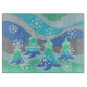 A modern, stylised winter landscape with frosted pine trees and sparkling snowflakes. Cutting board with a green, blue, silver grey and white customisable design for you to personalise with your own text, images and ideas. Image created using a digitally enhanced coloured pencil drawing.