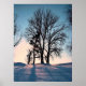 Winter trees on twilight blue sky background poster
