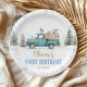 Serve up smiles with our Winter Truck Onederland Forest Birthday Paper Plates! Featuring a cute blue truck surrounded by adorable woodland animals—foxes, bears, and deer—amid snowy pine trees and frosty accents, these plates bring cosy winter charm to your winter boy birthday or woodland onederland celebration. Designed in soft watercolor blues with rustic forest details, they’re perfect for desserts, snacks, or party meals. A practical and adorable addition that completes your winter woodland party table in style.
