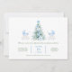 Embrace the festive spirit with this wintery twin boys blue baby shower invitation, featuring two blue carriages and a delightful blue and green Christmas tree.