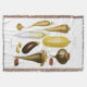 A beautiful vintage illustration of gourds, root vegetables and eggplant. Very crisp and clean on a lovely quality woven throw. Makes a thoughtful housewarming gift. Perfect in a rustic or modern eclectic decor! A very lovely vintage design. Bon Appetit!