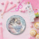 Birthday paper plates featuring a watercolor Cat. Winter vibes. Customisable.