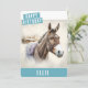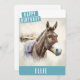 A cute watercolor birthday card featuring a donkey celebrating winter on the front with "Happy Birthday" in a white, all-caps bold font. Personalise the front by adding your name(s). The back of the card features space for your typed or handwritten message.