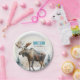 Cute birthday party paper plate featuring a moose celebrating winter. For winter-born kids. Customise this product by adding your party information.