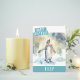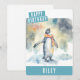 A cute watercolor birthday card featuring a penguin celebrating winter on the front with "Happy Birthday" in a white, all-caps bold font. Personalise the front by adding your name(s). The back of the card features space for your typed or handwritten message.