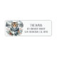 Winter vibes return address labels featuring a tiger with a scarf in a frozen landscape. Customisable.