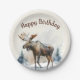Winter vibes Watercolor Moose - Birthday Party - Paper Plate