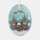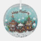 Festive Winter Village Fairytale Houses Snowflake Glass Ornament. Fairy tale houses in winter with snow and beautiful snowflakes. A Merry Christmas wish in a trendy script. You can change the text.