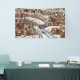 Perfect for puzzle lovers, Scandinavian decor fans, holiday shoppers, and fans of whimsical winter art, this delightful illustration depicts a snow-covered European-style town with vibrant houses, a striking red bridge, icy river, and tiny figures skating, walking, and playing. Ideal as wall art, jigsaw puzzle print, Christmas gift, or nursery/kids’ room decor — evoking warmth, nostalgia, and quiet joy in the season.
