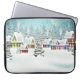 Village winter landscape with snow covered houses and christmas tree with decorations