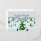 Winter village with snow, bunny, squirrel and pine foil holiday postcard