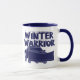 Perfect for all the winter warriors out there! Features an illustration of a pickup truck with a snowplow on the front and the message WINTER WARRIOR in navy blue snow-covered lettering.